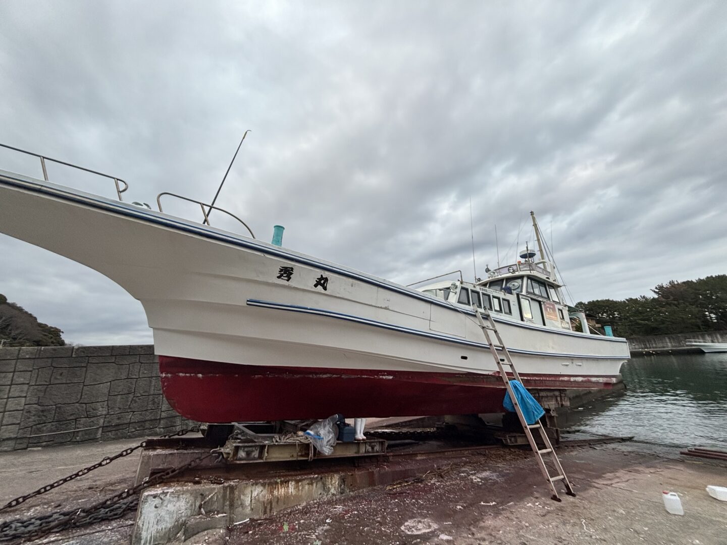 15日の夕方に上架して船底のペンキ塗りをしてました。