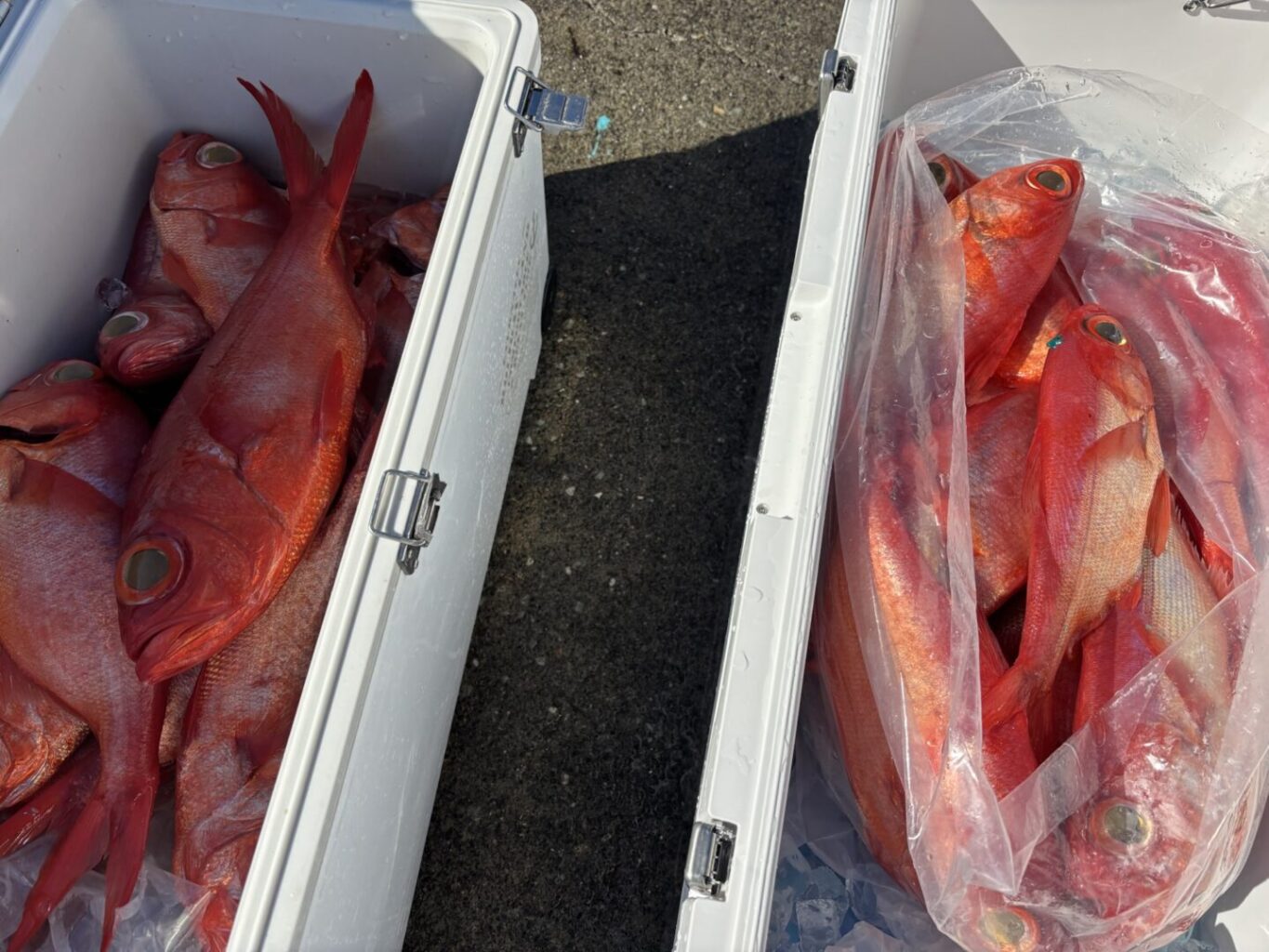 釣果情報 10/14(金) 投稿日: 2025年11月14日2025年11月14日 captain 石廊崎沖 水深300〜440m 水温21℃ 中盤まで駄目でしたが後半良型混じり少し釣れたのでなんとかなりました🎣ご ご乗船のお客様お疲れ様でした。 ⭐︎明日は鬼カサゴ釣りに出船します。