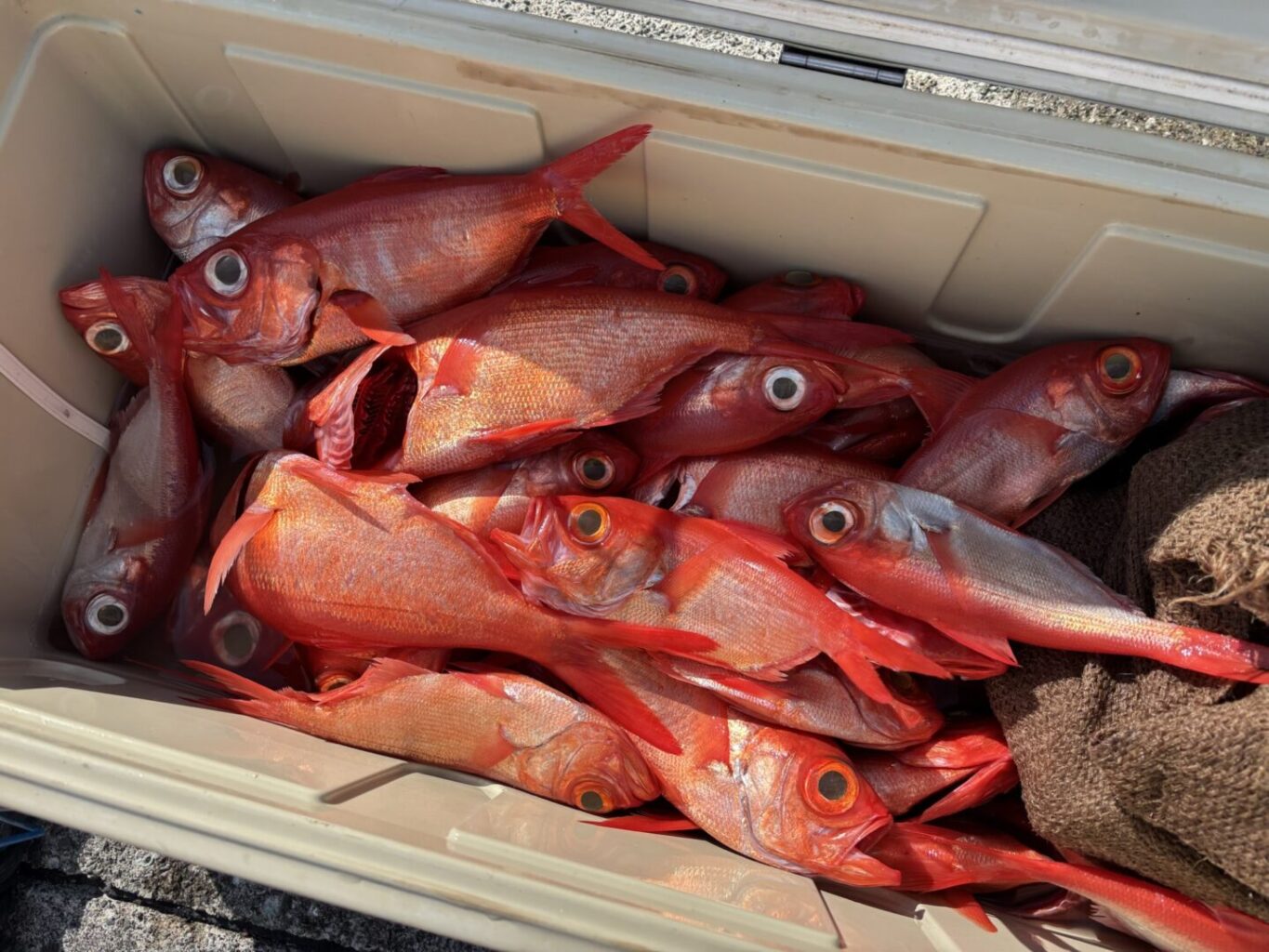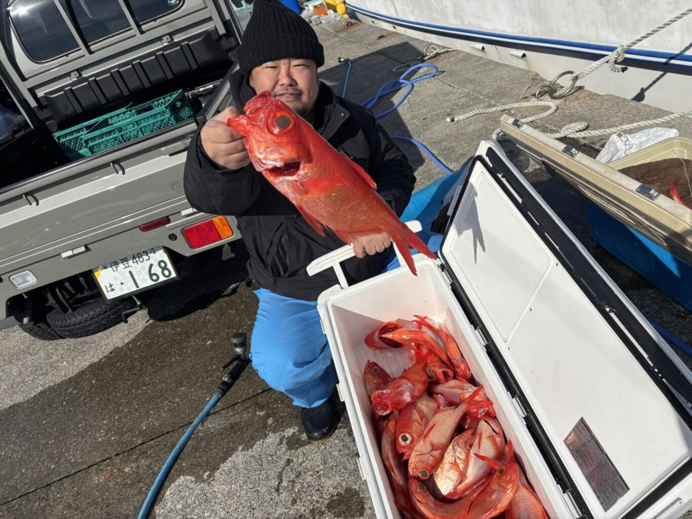 釣果情報 12/11(木) 投稿日: 2025年12月11日 captain 今日は金目鯛釣りに出船。 石廊崎冲 水深300〜450m 水温19.5℃ 前半顔見れなくて焦りましたが後半なんとか😊初挑戦のお客様も楽しめたので良かったです🎣 ご乗船のお疲れ様でした。 明日はヤリイカの予定でしたが予報悪く残念ですが中止です🌊
