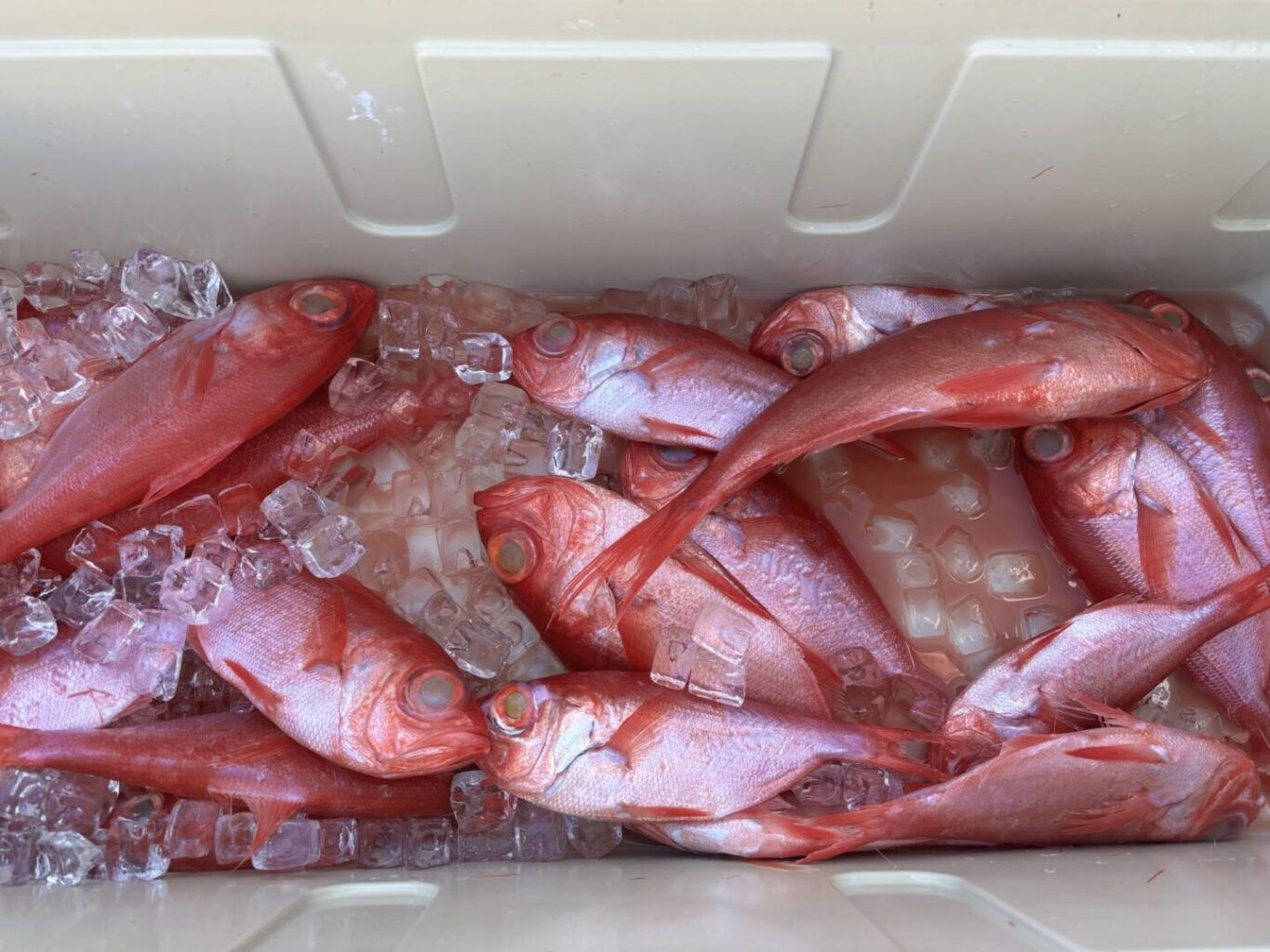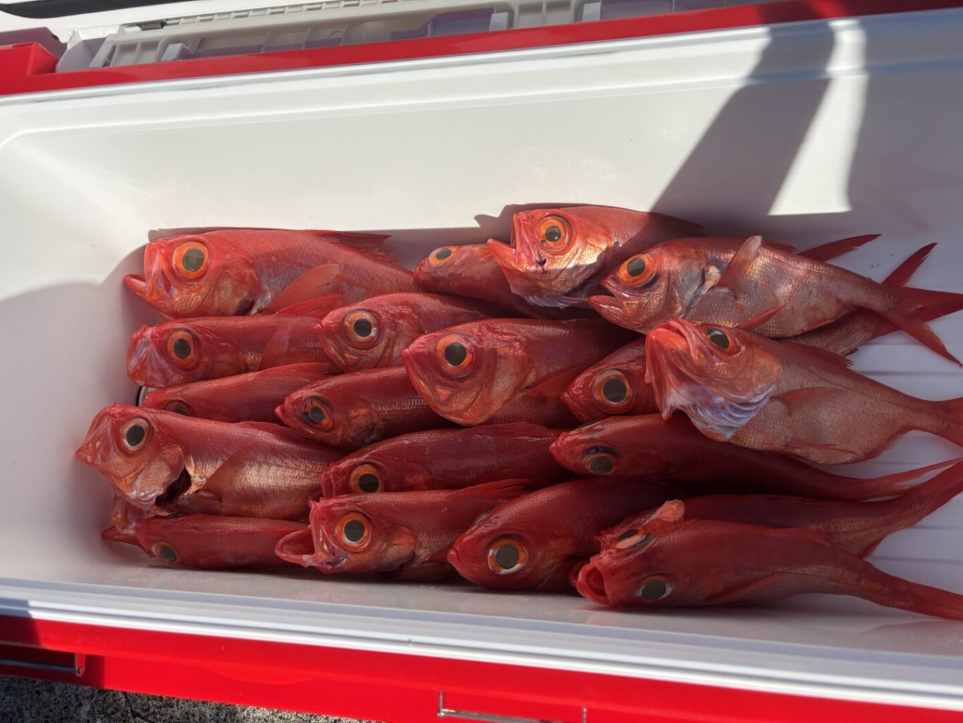 釣果情報 12/28(日) 投稿日: 2025年12月28日2025年12月28日 captain 今日は石廊金目鯛釣り🎣水深300〜550m 後半から上り潮が速くなりだめでしたが深いポイントでも良いサイズが入って来ので潮緩めばアコウ鯛と狙ってみます。 お客様お疲れ様でした。