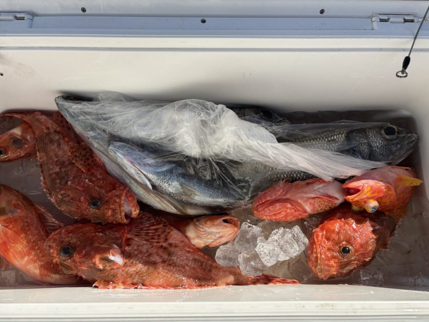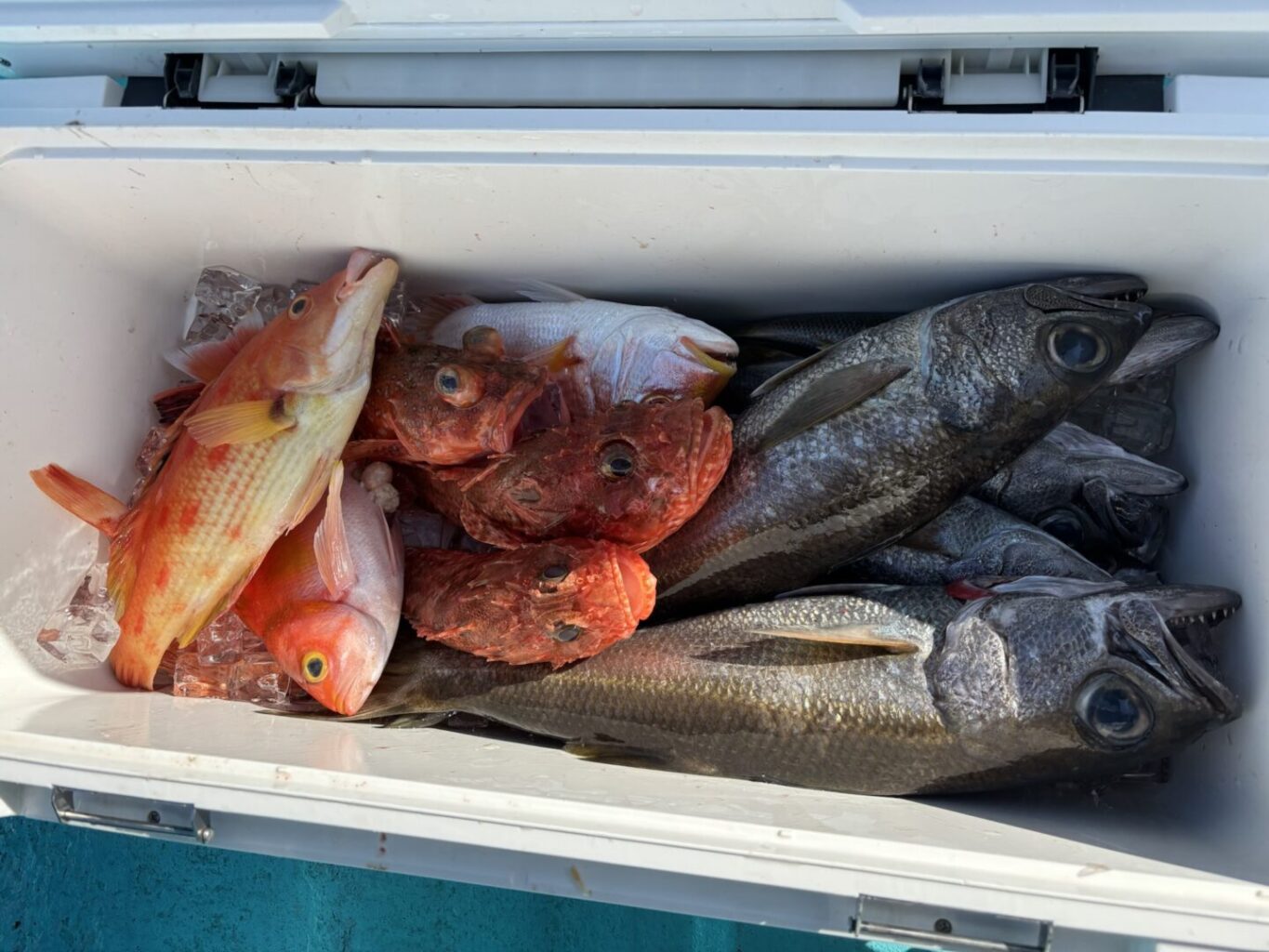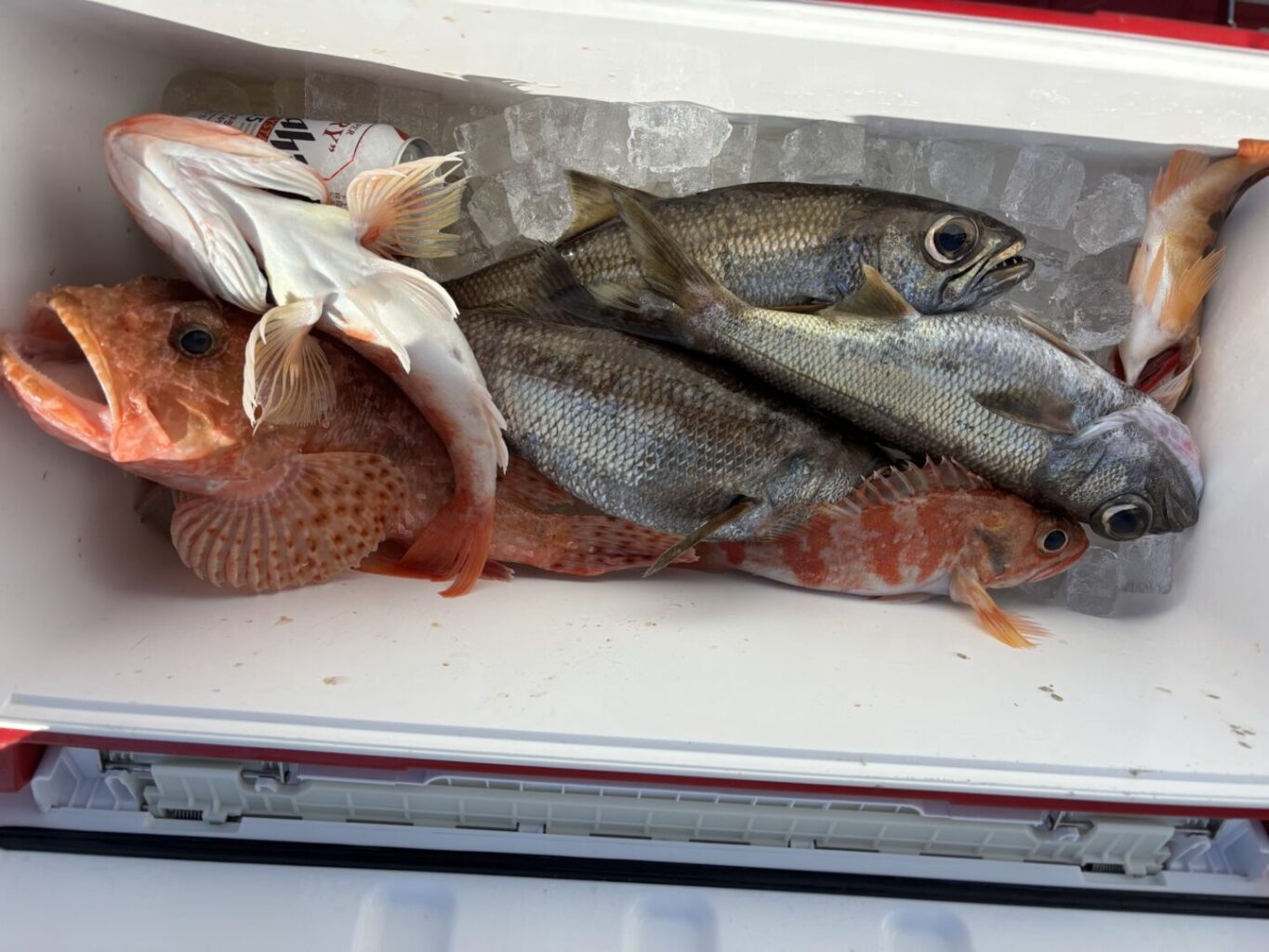 鬼カサゴは底潮動かずイマイチでした、ムツはちょいの間でしたが当たり多かったですよ。他にカンコ、ノドグロカサゴ、キダイ等