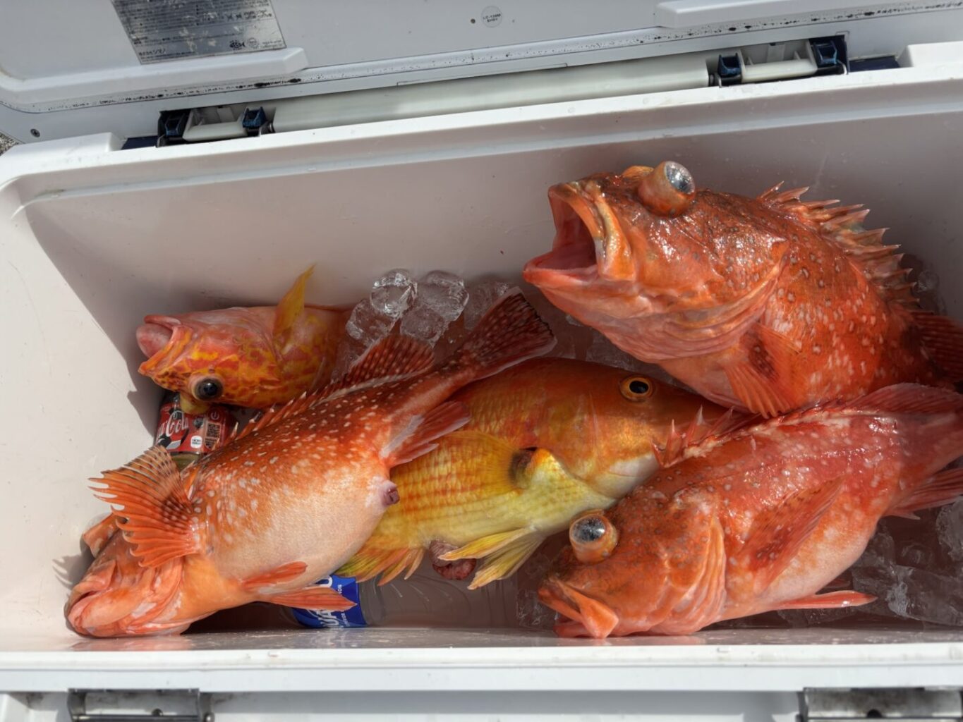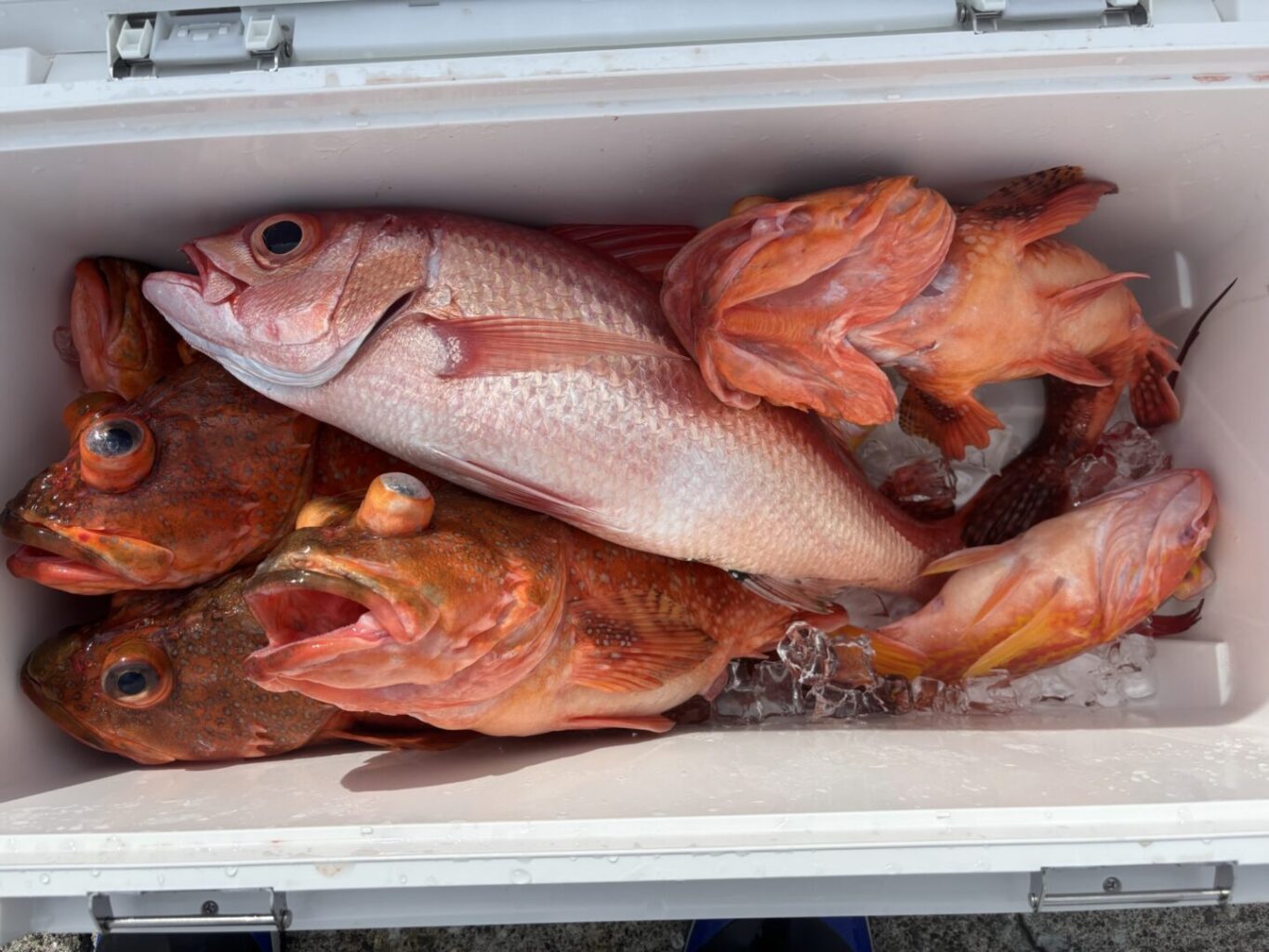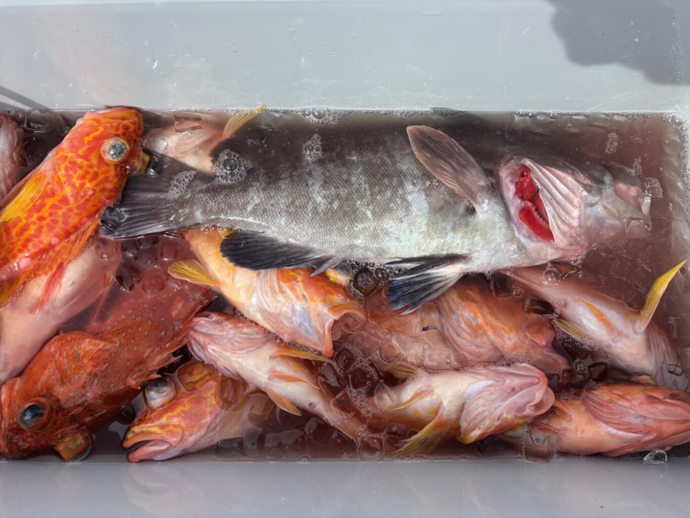 マハタ1.9㌔1本他尾長鯛、カンダイ、カンコ、ムツ、アヤメカサゴ等