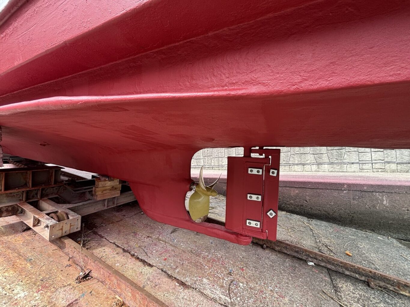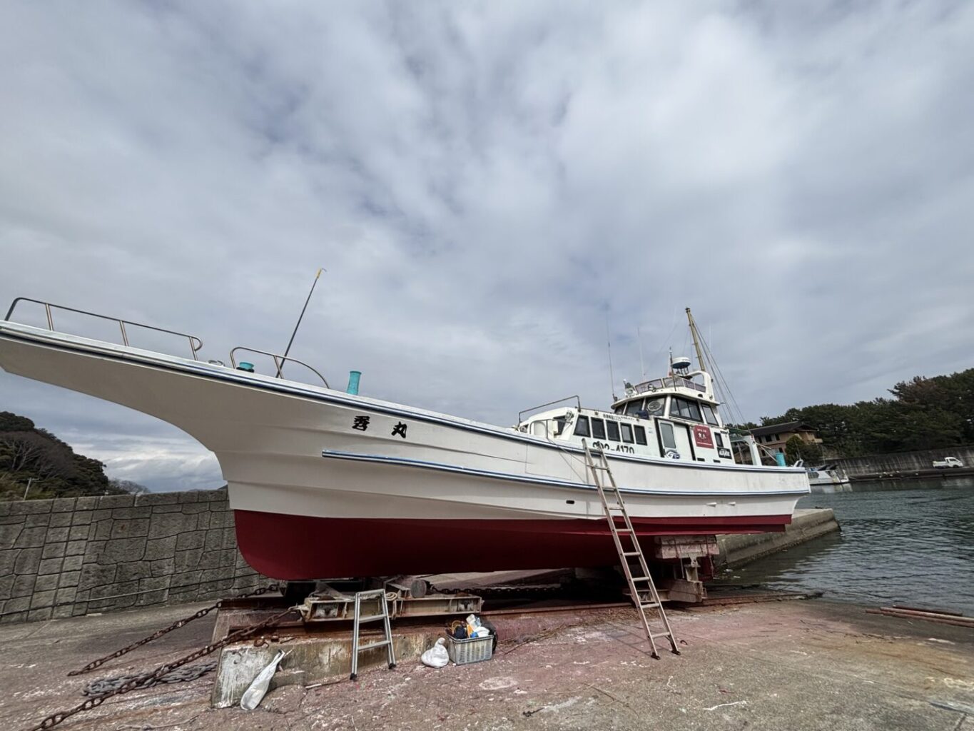 15日の夕方に上架して船底のペンキ塗りしてました。