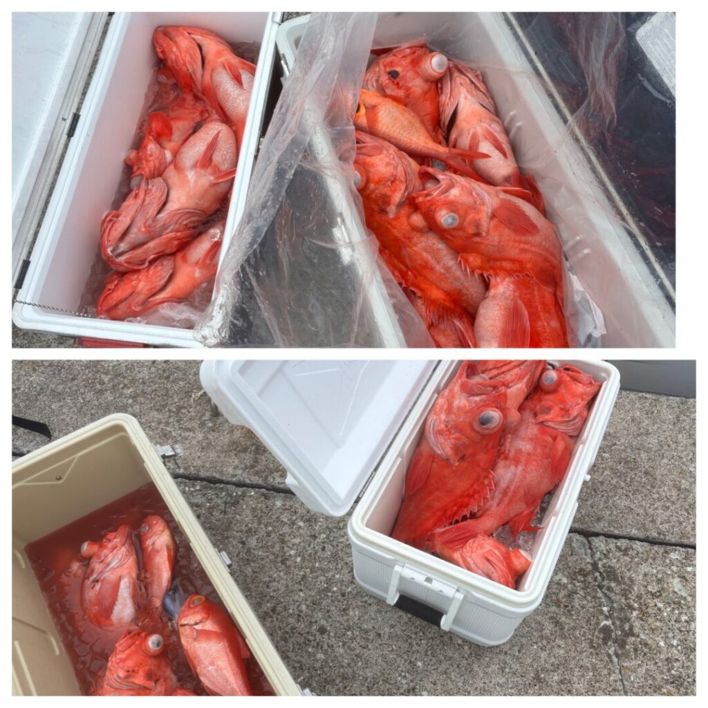 釣果情報 4/23(木) 投稿日: 2026年4月23日2026年4月23日 captain 今日は金目鯛とアコウ鯛狙いました🎣 石廊崎沖 水深300〜570m 水温19℃ 7回流して上がりました☔️お疲れ様でした。 ⭐︎明日は休船します。夜は雨風が強そうなので手石港に移動しました。 ⭐︎明後日から再開の予定です🎣